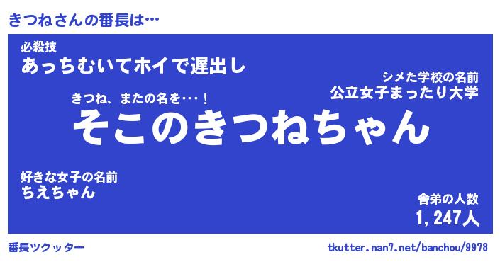 | ポケモン風あだ名 | 『キツチュウ』『キツネダネ』 |