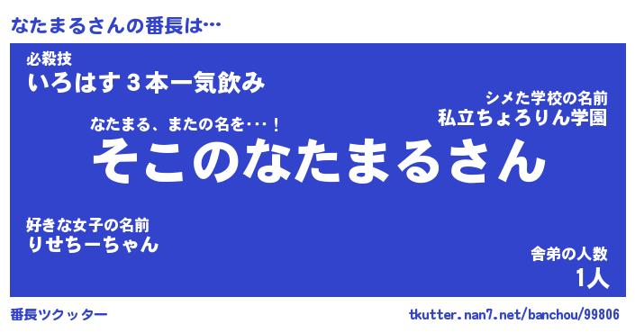 | 意味不明あだ名 | 『ペロリンなたまる』『永久保存なたまる』 |