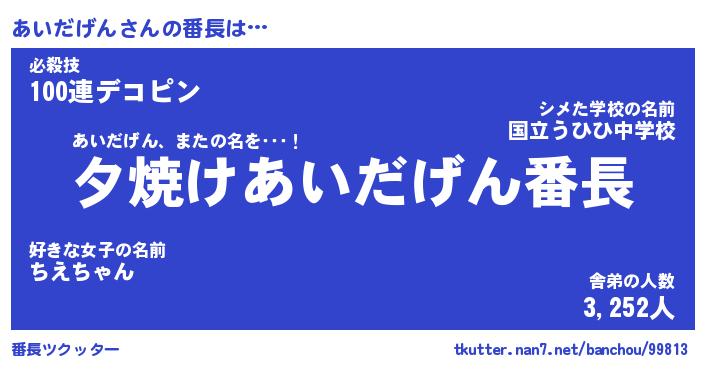 | 肩書あだ名 | 『あいだげんCEO』『あいだげん総理大臣』 |