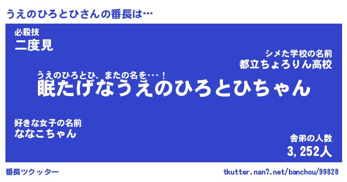 | ポケモン風あだ名 | 『ウエチュウ』『ウエノダネ』 |