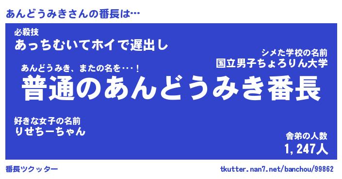 | 2回繰り返すあだ名 | 『あんあん』『ああんん』『なあなあ』 |