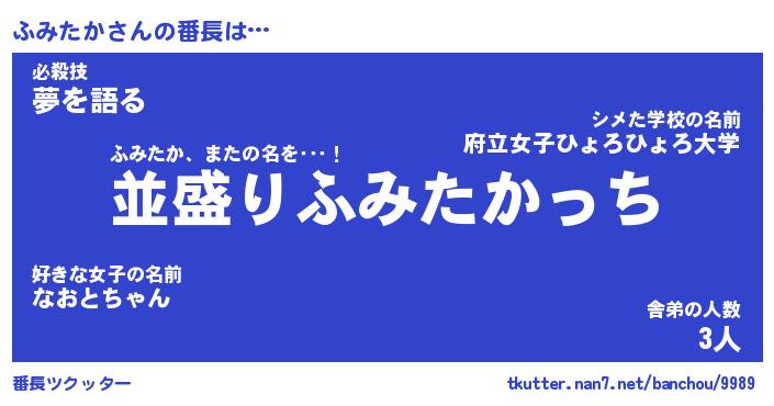 | ヘコむあだ名 | 『ふみもー』『なまこ酢』 |