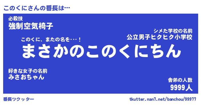| ヒーロー風カッコイイあだ名 | 『スーパーコノクニ』『天弓騎士コノ』 |