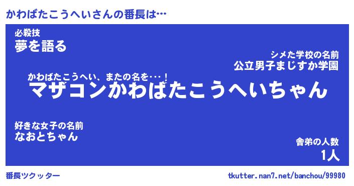 | 肩書あだ名 | 『かわばたこうへいCEO』 |