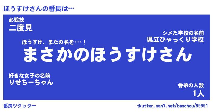 | 意味不明あだ名 | 『ペロリンほうすけ』『永久保存ほうすけ』 |