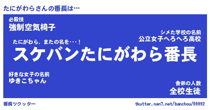 | ヒーロー風カッコイイあだ名 | 『スーパータニガワラ』『暗黒騎士タニ』 |