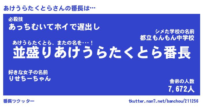 | ヒーロー風カッコイイあだ名 | 『スーパーアケウラタクトラ』 |