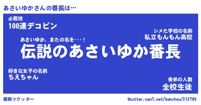 | ヘコむあだ名 | 『あさふぇ~』『つくし』『あさお』 |