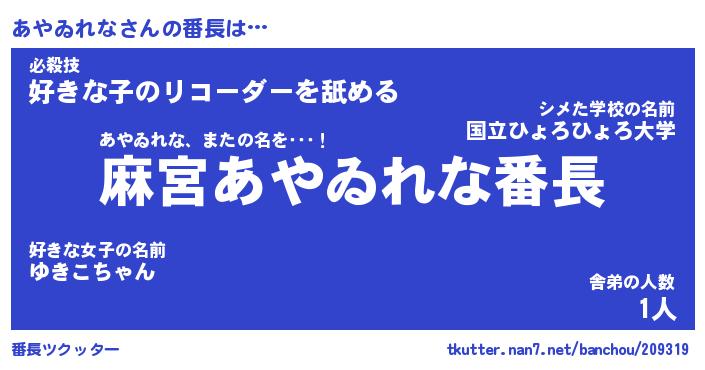 | 意味不明あだ名 | 『ペロリンあやゐれな』 |