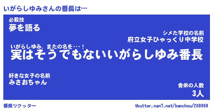 | ヒーロー風カッコイイあだ名 | 『スーパーイガラシユミ』『銀牙騎士イガ』 |