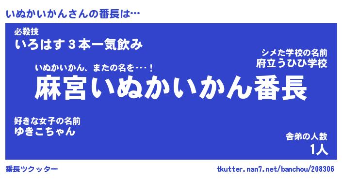 | ヘコむあだ名 | 『いぬもー』『つくし』『いぬ太郎』 |