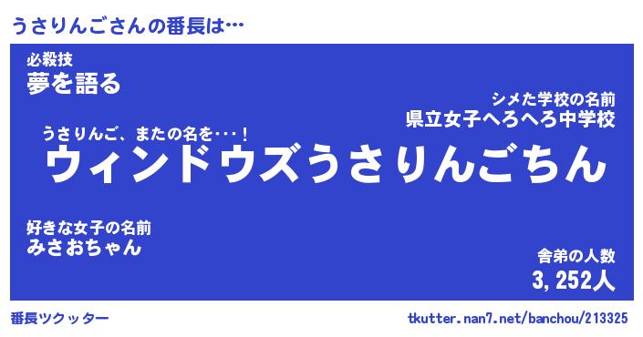 | ヘコむあだ名 | 『うさふぇ~』『つくし』『うさ太郎』 |