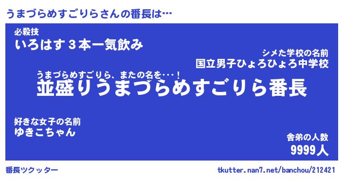 | ヒーロー風カッコイイあだ名 | 『スーパーウマヅラメスゴリラ』 |