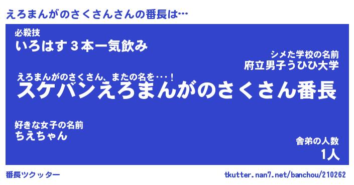 | ヘコむあだ名 | 『えろもー』『酢こんぶ』『えろお』 |