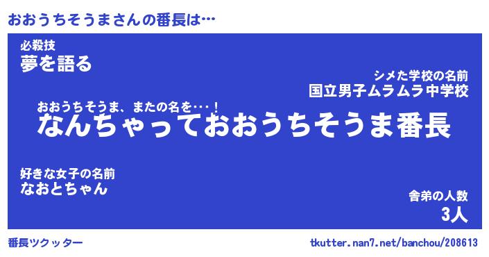 | 肩書あだ名 | 『おおうちそうま御曹司』 |