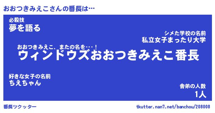 | 女子向けラノベタイトル風あだ名 | 『(仮)おおつきみえこのやんごとなき事情』 |