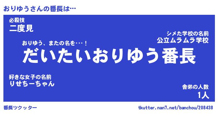 | 男性向けラノベタイトル風あだ名 | 『おりゆうの憂鬱』 |