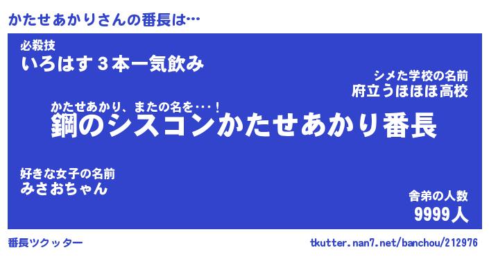 | ヒーロー風カッコイイあだ名 | 『スーパーカタセアカリ』『銀牙騎士カタ』 |
