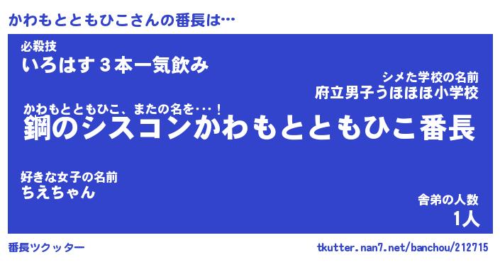 | 伝説のあだ名 | 『封印されしスナイパーかわもとともひこ』 |