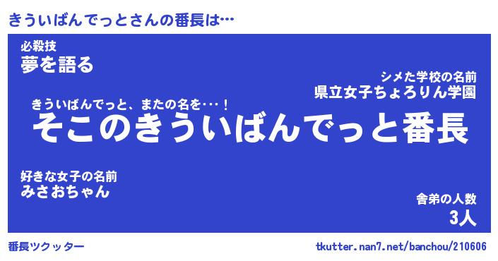 | 男性向けラノベタイトル風あだ名 | 『きういばんでっとの憂鬱』 |