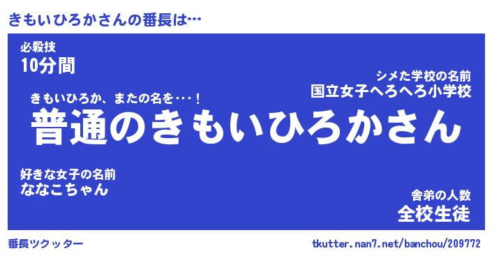 | ヘコむあだ名 | 『きもにー』『牛乳』『きも太郎』 |