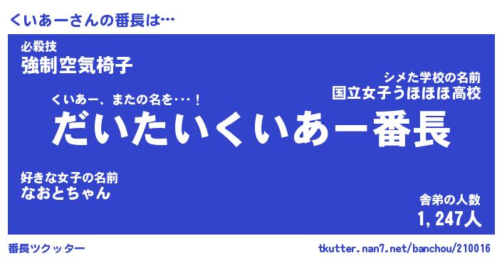 | 意味不明あだ名 | 『ペロリンくいあー』『永久保存くいあー』 |