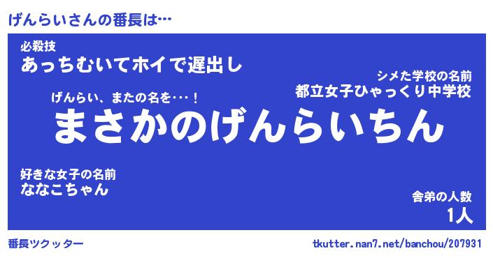 | 意味不明あだ名 | 『ペロリンげんらい』『永久保存げんらい』 |