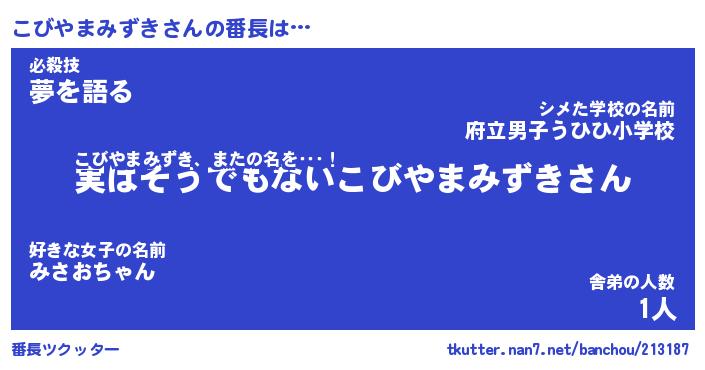 | 伝説のあだ名 | 『封印されしスナイパーこびやまみずき』 |