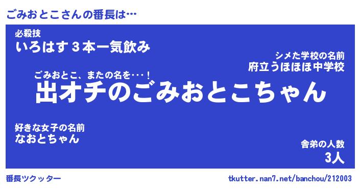 | ピコ太郎風あだ名 | 『ゴコ三郎』『ピゴ史郎』『ゴミ六郎』 |
