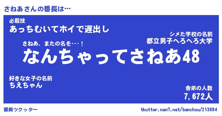 | 意味不明あだ名 | 『ペロリンさねあ』『さねあフォーエバー』 |