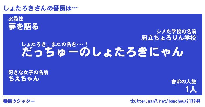 | 伝説のあだ名 | 『伝説のスナイパーしょたろき』 |