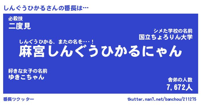 | 2回繰り返すあだ名 | 『しんしん』『ししんん』『ぬらぬら』 |