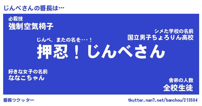 | 意味不明あだ名 | 『ペロリンじんべ』『じんべフォーエバー』 |