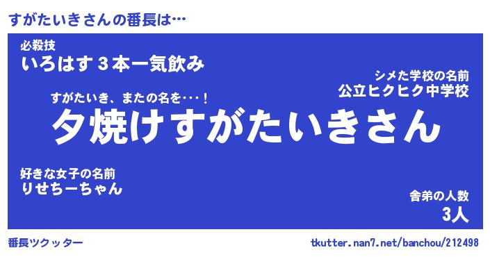 | 男性向けラノベタイトル風あだ名 | 『スガタイキアートオンライン』 |