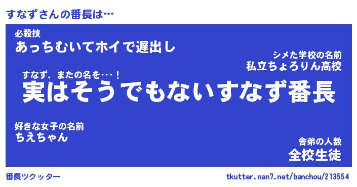 | ヒーロー風カッコイイあだ名 | 『スーパースナズ』『ウルトラすなずマン』 |