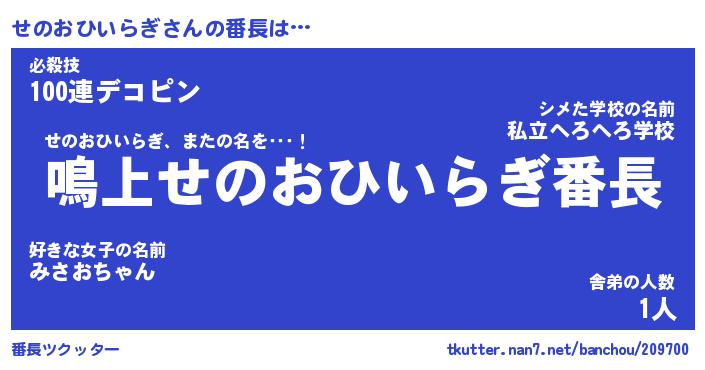 | ツイッター | せのおひいらぎさんのツイッターID『namakemono_nyan』 |