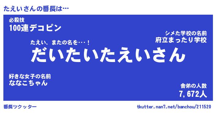 | ヒーロー風カッコイイあだ名 | 『スーパータエイ』『ウルトラたえいマン』 |