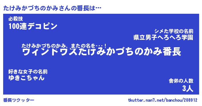 | 肩書あだ名 | 『たけみかづちのかみ店長』 |