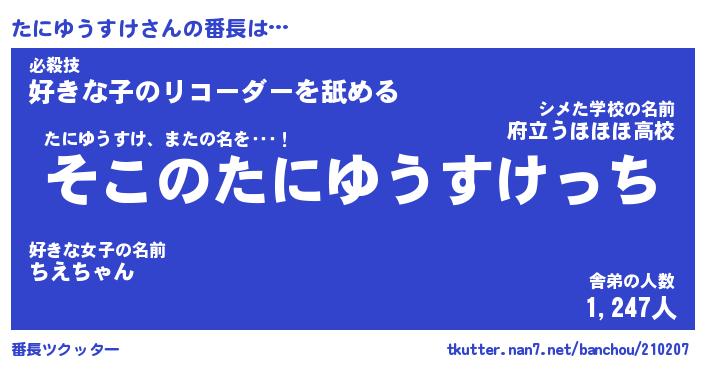 | 意味不明あだ名 | 『ペロリンたにゆうすけ』 |