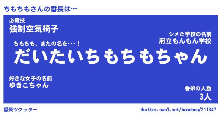 | ヘコむあだ名 | 『ちもふぇ~』『つくし』『ちも太郎』 |