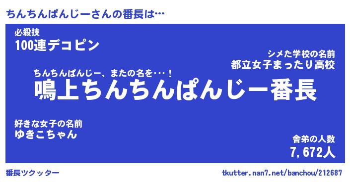 | 2回繰り返すあだ名 | 『ちんちん』『ちちんん』『うろうろ』 |