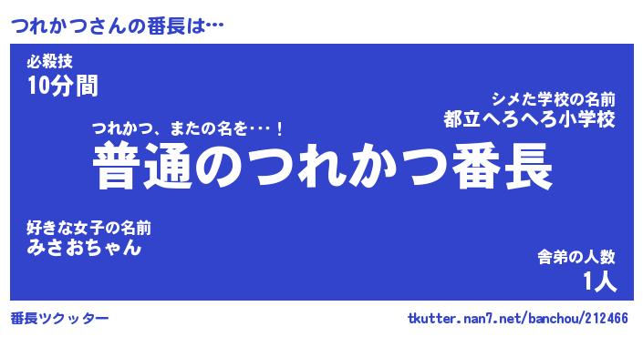 | 肩書あだ名 | 『つれかつ社長』『つれかつ国家主席』 |
