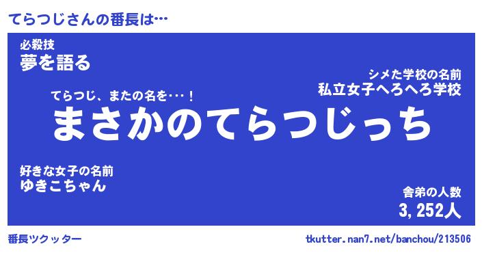| 意味不明あだ名 | 『ペロリンてらつじ』『永久保存てらつじ』 |