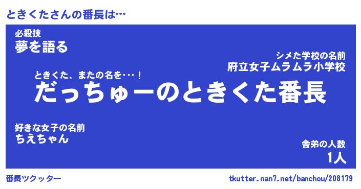 | ヒーロー風カッコイイあだ名 | 『スーパートキクタ』『暗黒騎士トキ』 |