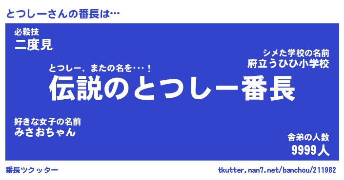 | 肩書あだ名 | 『とつしー社長』『とつしー国家主席』 |