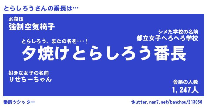 | ヘコむあだ名 | 『とらもー』『牛乳』『とらぷりん』 |