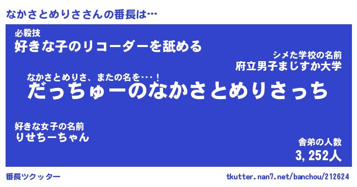 | 伝説のあだ名 | 『伝説のスナイパーなかさとめりさ』 |
