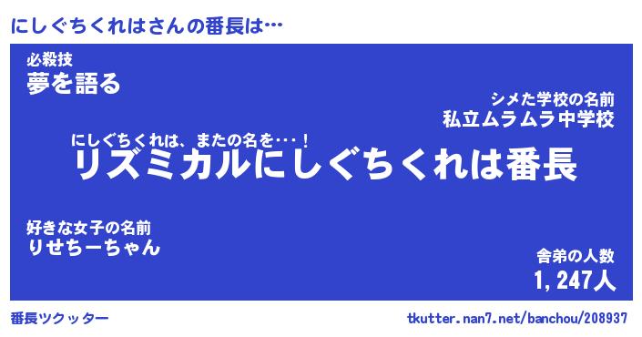 | 2回繰り返すあだ名 | 『にしにし』『ににしし』『なあなあ』 |