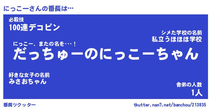 | 意味不明あだ名 | 『ペロリンにっこー』『永久保存にっこー』 |