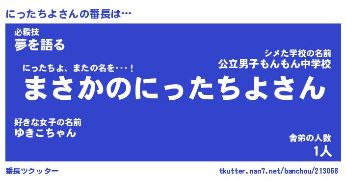 | ヒーロー風カッコイイあだ名 | 『スーパーニッタチヨ』『黄金騎士ニッ』 |